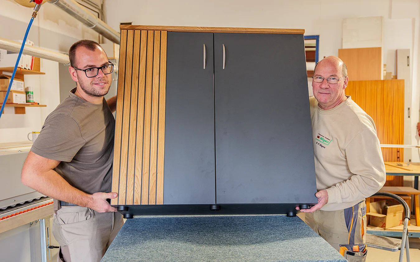 Gemeinsam arbeiten wir mit Leidenschaft und Sorgfalt. Jeder Handgriff sitzt, jede Idee wird mit Begeisterung umgesetzt. So entstehen aus Holz echte Lieblingsstücke.
